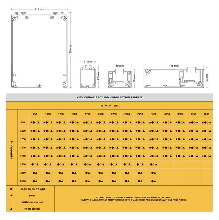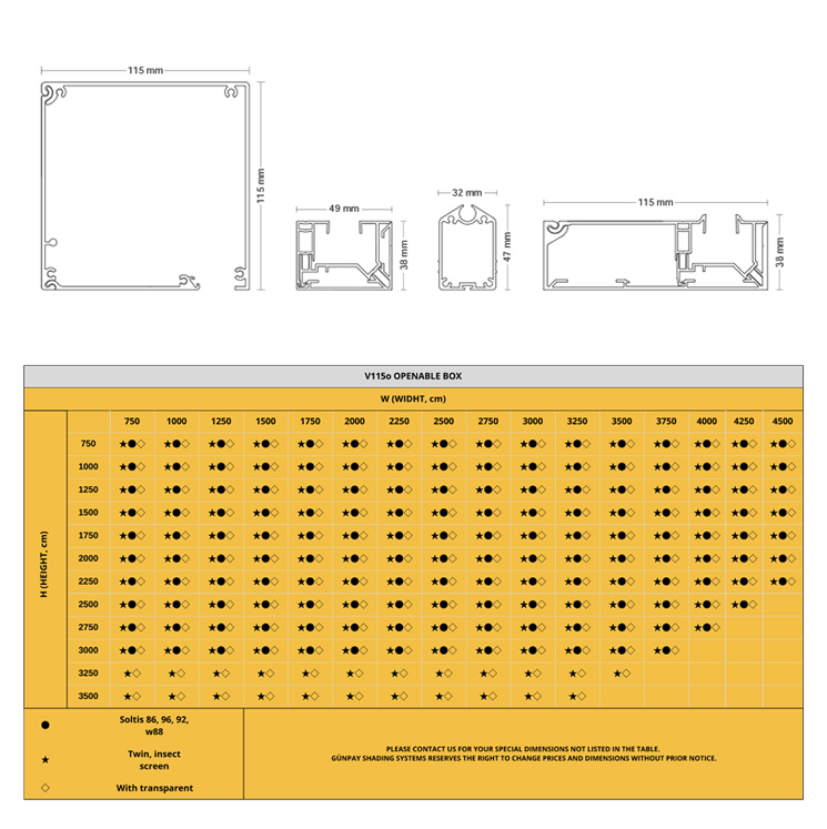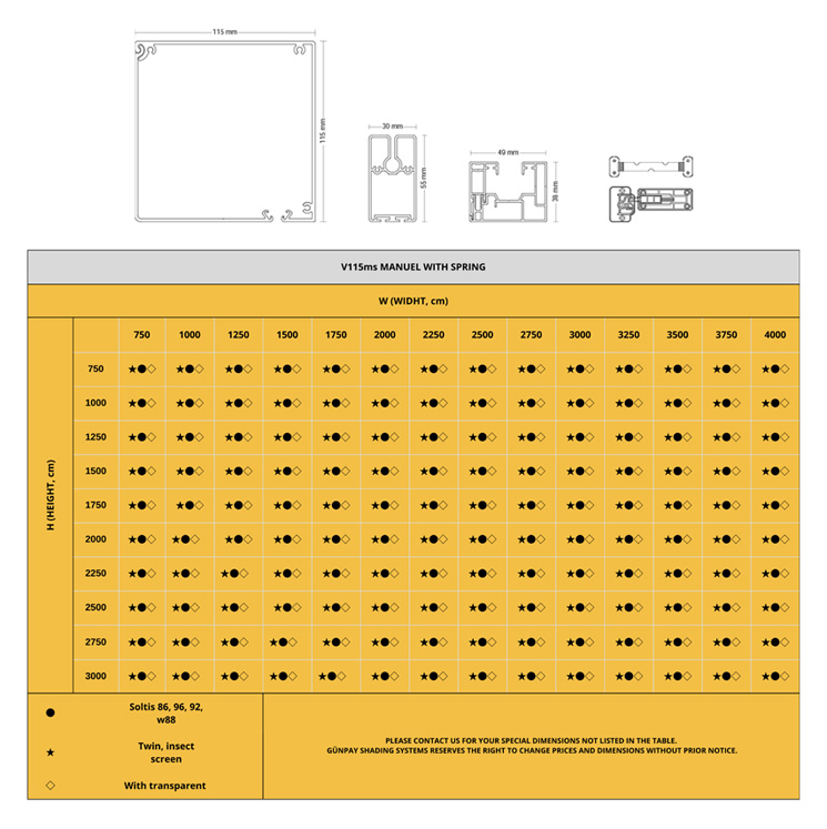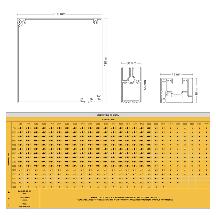 Cassette Structure: 130 mm cassette allows more fabric and better stability for wide openings.