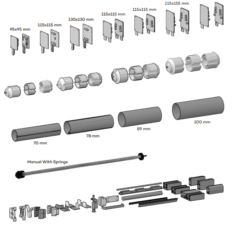 - Motorized or Manuel System. Also, solar panel can be applicable.